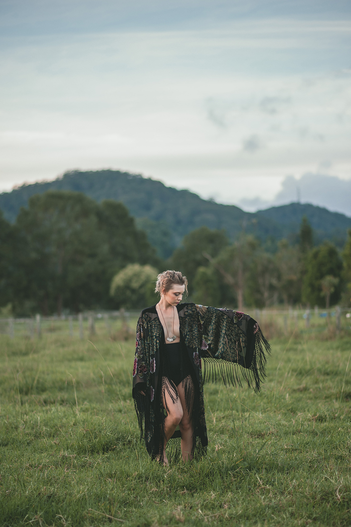 This session was a way for a few of us to let off a little creative steam & had been a long time coming. Many thanks to hair & horse whisperer Kate, make-up artist Belinda & craftswoman (of skirts made from curtain lace) Jade 🙂 The beautiful velvet kimono is available through Shantique Designs.