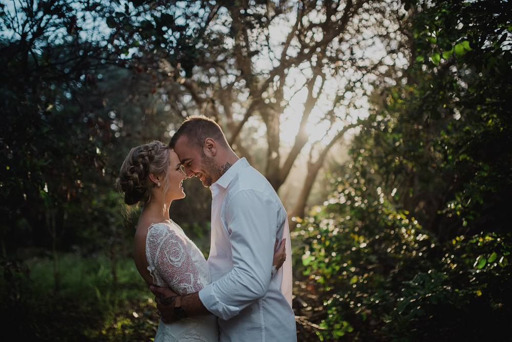 Abbie & John bypassed all the fuss by staging a surprise wedding at their engagement party. Abbie didn’t even tell her hair or makeup artists until they arrived that morning. A whole group photo played the role of distraction while Abbie & her dad strolled down toward John & their celebrant. It was a beautiful relaxed party atmosphere & the sunset was <3